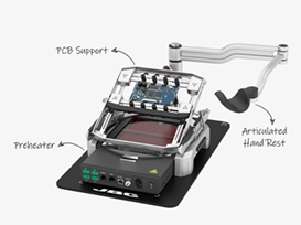 The optimal rework set, combining preheater, PCB support, and articulated hand rest